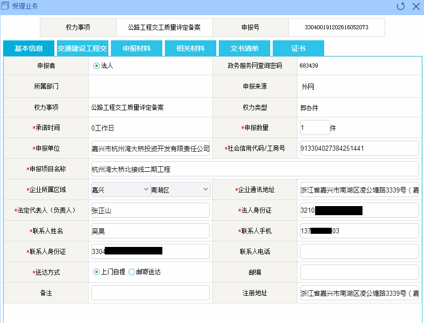 灣北二期工程交工質量評定備案服務信息