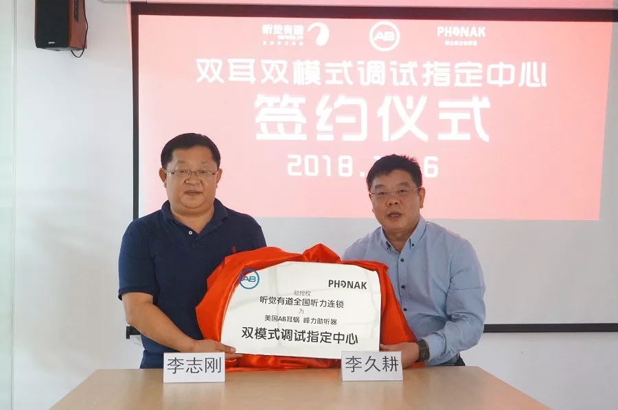<span style="font-size:16px;"> 11月6日,聽覺有道、美國AB耳蝸和瑞士索諾瓦聽力聯(lián)合舉辦的雙模式調(diào)試授權簽約儀式在聽覺有道全國運營管理中心廣州順利進行。</span></p><p><span style="font-size:16px;"> 聽覺有道董事長兼總裁李久耕、門店孵化事業(yè)部負責人吳敏悅、市場部經(jīng)理高蕾、美國AB耳蝸代表李志剛先生、肖紅玲女士、林麗麗女士等參加了此次簽約儀式,并發(fā)表重要講話。</span></p><p><span style="font-size:16px;"> </span></p><center><span style="font-size:16px;"><img alt="" src="/upfiles/201811060603068666.jpg" width="643" /></span></center><p></p><p><span style="font-size:16px;"> 聽覺有道對美國AB耳蝸和峰力美人魚助聽器實現(xiàn)真正的雙耳互聯(lián)、互通、互傳這一聽力行業(yè)領先技術早日廣泛推廣、應用,造福聽障兒童,表示了殷切的期望。</span></p><p><span style="font-size:16px;"> 美國AB耳蝸公司對聽覺有道在聽力行業(yè)內(nèi)提供的科技、溫暖的服務理念及迅猛發(fā)展的連鎖規(guī)模表達了高度的贊賞。</span></p><p><span style="font-size:16px;"> 此次儀式的簽定,意味著雙方將利用各自的優(yōu)勢,合作、協(xié)同、共同努力提升國內(nèi)聽障兒童“聽”的能力和標準!</span></p><p></p><p><span style="font-size:16px;"> 簽約儀式現(xiàn)場</span></p><p><span style="font-size:16px;"> </span></p><center><span style="font-size:16px;"><img alt="" src="/upfiles/201811060603215236.jpg" width="677" /></span></center><p></p><p><span style="font-size:16px;"> △聽覺有道與美國AB耳蝸攜手合作,造福廣大聽障兒童</span></p><p><span style="font-size:16px;"> </span></p><center><span style="font-size:16px;"><img alt="" src="/upfiles/201811060603296241.jpg" width="677" /></span></center><p></p><p><span style="font-size:16px;"> △聽覺有道董事長和美國AB耳蝸代表共同揭牌:雙模式調(diào)試指定中心</span></p><p><span style="font-size:16px;"> </span></p><center><span style="font-size:16px;"><img alt="" src="/upfiles/20181106060340817.jpg" width="677" /></span></center><p></p><p><span style="font-size:16px;"> △雙方代表出席簽約儀式,在聽覺有道全國運營管理中心合影留念</span></p><p><br /></p><p></p><p><span style="font-size:16px;"> 美國AB耳蝸介紹</span></p><p><span style="font-size:16px;"> 美國AB人工耳蝸公司,是全球頂尖聽力集團Sonova的子公司,成立于1993年,憑借其強大的技術實力和銳意進取的創(chuàng)新能力,成為人工耳蝸領域無可爭議的領先者。</span></p><p><span style="font-size:16px;"> 針對各種類型的聽損人士,AB耳蝸提供了整套的雙耳聆聽方案,改善了無數(shù)聽損人士的生活。</span></p><p><span style="font-size:16px;"> </span></p><center><span style="font-size:16px;"><img alt="" src="/upfiles/201811060603546083.jpg" width="677" /></span></center><p></p><p><span style="font-size:16px;"> 雙耳雙模式</span></p><p><span style="font-size:16px;"> 雙耳雙模式是指一側(cè)戴助聽器,另一側(cè)植入人工耳蝸的聽力輔助方式。</span></p><p><span style="font-size:16px;"> 這種方式能預防聽力剝奪,提升聲源定位能力,提高噪音下的言語識別能力,提高大腦對聲音的處理能力,讓用戶更好更清晰地聆聽,備受聽力學家的推崇。</span></p><p><span style="font-size:16px;"> 本次簽約,意味著用戶在聽覺有道全國聽力連鎖便可完成助聽器和人工耳蝸的調(diào)機,再也不用在助聽器驗配中心和人工耳蝸廠商兩邊跑了。</span></p>" />